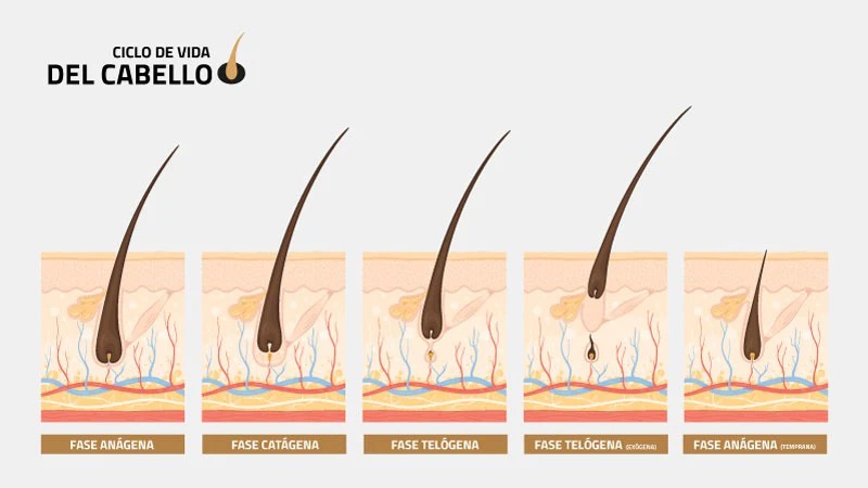 El ciclo de crecimiento del cabello está regulado por fases: anágena (crecimiento), catágena (transición) y telógena (reposo). Durante la caída estacional, un mayor número de folículos pilosos entran en la fase telógena, lo que provoca que se desprendan más cabellos de lo habitual.
